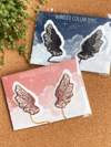 2" hard enamel pins that can either be displayed or worn on the lapel. Available in pink and blue colorways. Each set comes with a matching 4" chain. Pins have two posts on each wing for stability and come with rubber backings.